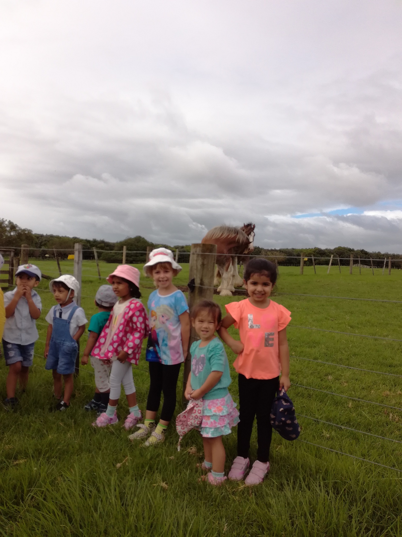 Children had a wonderful time at Ambury farm with their friends. They were happy looking at different animals at the farm including cows, chicken, pig, rooster, rabbits and horses.